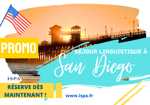 Code promo C0126 à indiquer sur votre fiche d’inscription : offre valable pour un séjour linguistique d’au minimum 2 semaines à San Diego aux USA, pour toute inscription reçue avant le 15/06/26 et pour un départ effectué en 2026. Offre non cumulable. Cette offre est valable uniquement pour un séjour linguistique à San Diego aux USA.